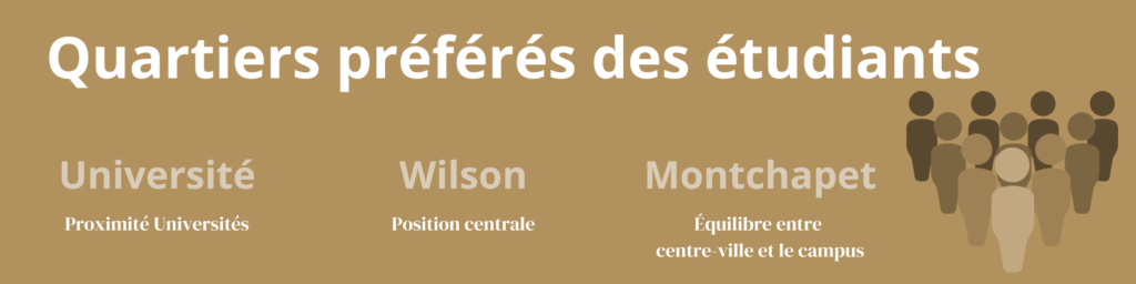 Le quartier Wilson offre un équilibre entre le centre-ville et le campus universitaire. Situé près de la place Wilson, il propose un cadre de vie calme et résidentiel. Les étudiants y trouvent un environnement moins animé que le centre mais plus proche des commodités que le quartier Université. Les transports en commun permettent de rejoindre les cours facilement. Ce quartier intéresse particulièrement les étudiants cherchant un compromis entre tranquillité, mobilité et vie citadine.