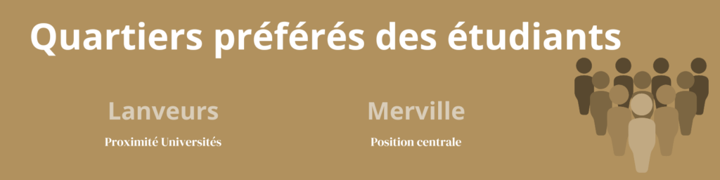 Les étudiants privilégient les quartiers proches des campus, notamment Merville et Lanveurs. Les T1bis meublés et les T2 se louent facilement, tandis que la colocation séduit les étudiants des écoles d’ingénieurs.